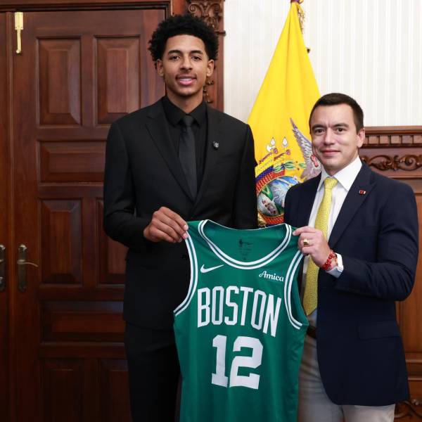 El presidente de Ecuador, Daniel Noboa, entregó este martes un reconocimiento al balocentista Reggie Jason Luis Jr., el primer jugador de origen ecuatoriano en llegar a la NBA, tal como se conoce a la liga profesional estadounidense, donde forma parte de la franquicia de los Boston Celtics.
