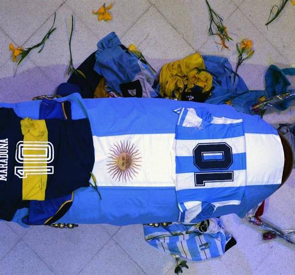 Se trata de algunos hinchas de Argentinos Juniors, club en el que se formó y debutó Maradona, que tiene sede en el barrio porteño de La Paternal, donde se encuentra la empresa funeraria.