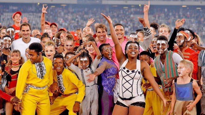 Para Federer la ocasión era “mágica” puesto que su madre es sudafricana y en el país tiene no solo familia, sino también grandes recuerdos de infancia. Por ese motivo, fue precisamente Lynette Federer la encargada de lanzar la moneda para decidir quién comenzaba sirviendo en el primer duelo de la noche: un set de dobles cargado de humor en el que Trevor Noah y Bill Gates sorprendieron al público con sus buenas aptitudes con la raqueta. Federer y Gates se apuntaron la victoria por 6 juegos a 3, pero Noah y Nadal se ganaron al público con su compenetración para hacer bromas.