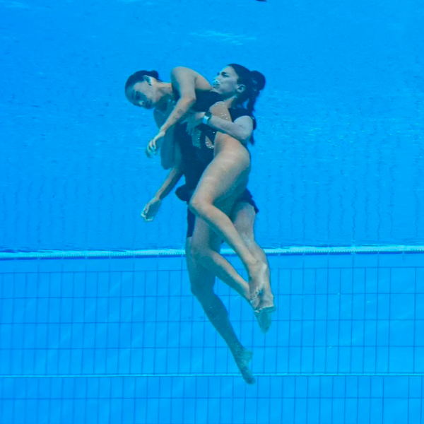 Un percance que se quedó sólo en su susto gracias a la rápida intervención de su e entrenadora, la española Andrea Fuentes, que no dudó en lanzarse a la piscina para rescatar a su pupila.