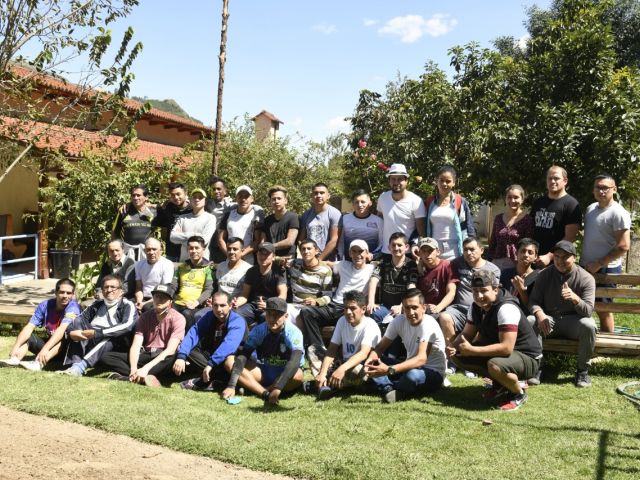 Ivan, su novia Kathy, la Dra Jennyfer Silva psicóloga clínica y directora técnica, Ronal calle Álvarez Director general, David Ceme terapeuta Vivencial , Mauricio Atiencia psicólogo clínico terapeuta familiar con todos los pacientes de la clíbica RENACER. Foto: César Mera.