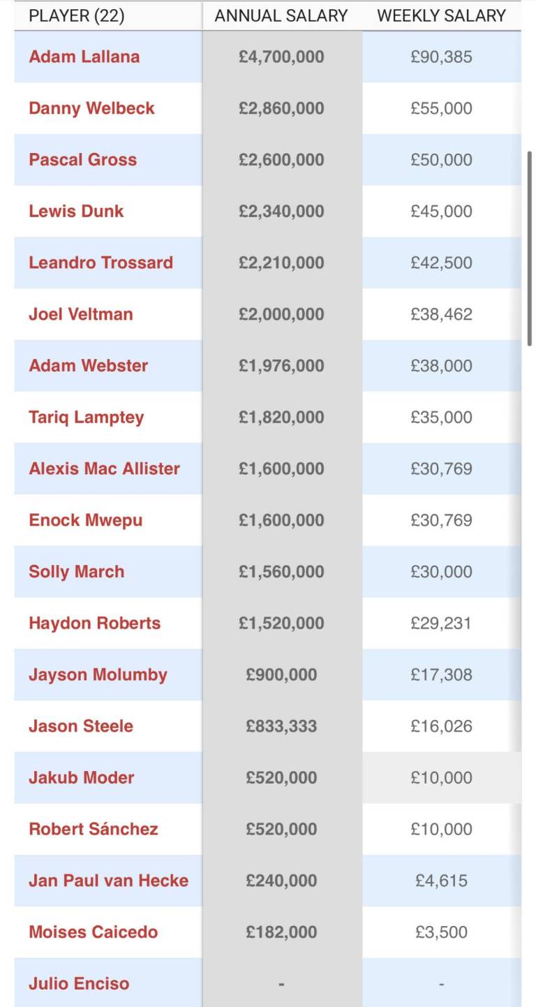 Moisés Caicedo llegó al Brighton & Hove Albion en el año 2021 proveniente de Independiente del Valle por 5 millones de euros. Desde ese entonces hasta ahora, el salario de Moisés no se ha visto modificado en lo más mínimo.