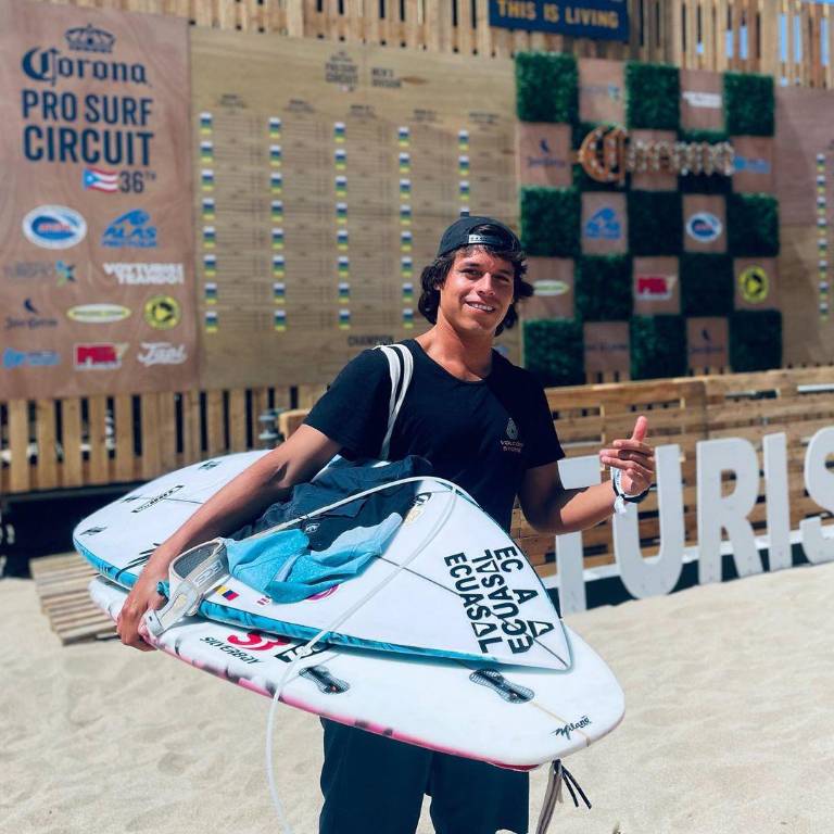 Creció en las playas de Montañita. Desde pequeño veía a los surfistas profesionales dominar las olas. Pronto su padre le regaló una tabla y empezó a pasar más tiempo en el agua que en tierra.