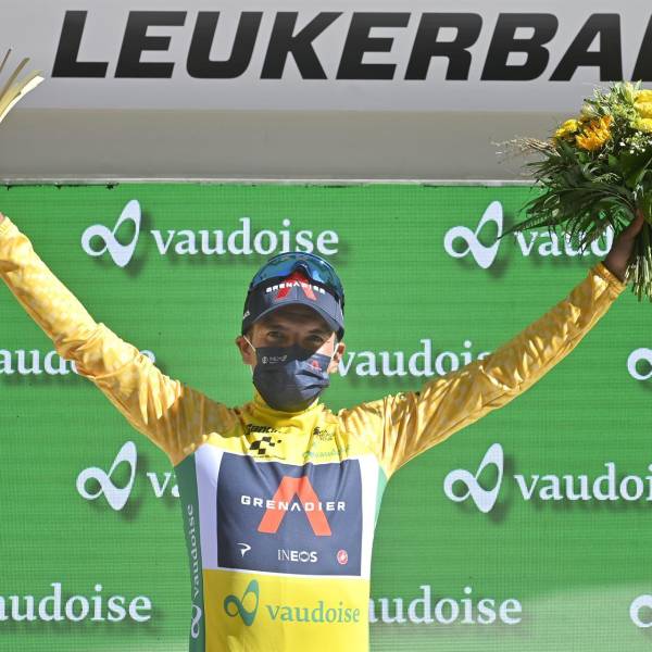 El colombiano Esteban Chaves, de BikeExchange y el holandés Antwan Tolhoek, de Jumbo-Visma aceleraron junto al danés Jakob Fuglsang, de Premier Tech, quien previamente demostró una gran confianza para iniciar la escalada en solitario del último puerto a Leukerbad, a poco más de cinco kilómetros para el final.