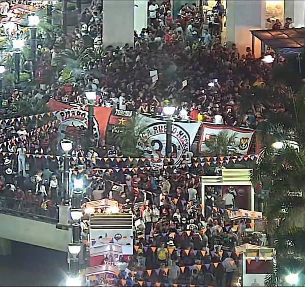 En redes sociales se viralizó un video en el que se puede ver a los hinchas del Flamengo, en Puerto Santa Ana, mientras coreaban las canciones del equipo guayaquileño, Barcelona Sporting Club.