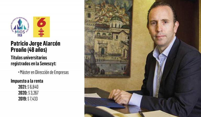 De empresario a político. Aunque siempre ha emitido comentarios políticos, esta es la primera vez que se lanza a una candidatura. El expresidente de la Cámara de Comercio de Quito y del Comité Empresarial Ecuatoriano, Patricio Alarcón busca la Alcaldía bajo el auspicio de la “Alianza por el Orden y la seguridad para Quito, conformada por el Partido Social Cristiano (PSP) y el Movimiento Incluyente de Oportunidades y Equidad Social (MIOS).