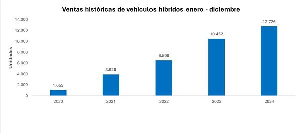 En el 2024, por ejemplo, se comercializaron 12.726 carros híbridos, lo cual representa un 21,8% más que en el 2023, año en el que se vendieron 10.452 unidades de este segmento.