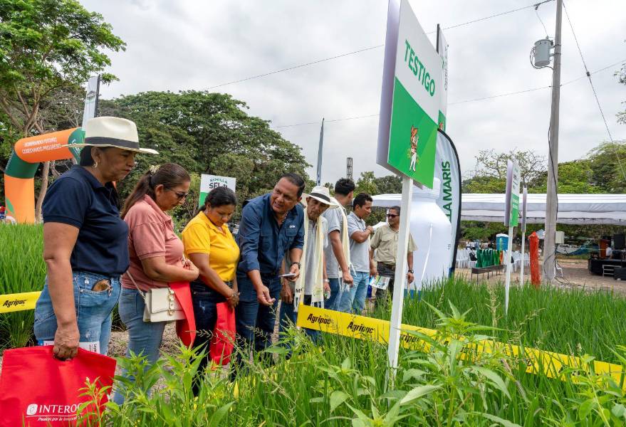 Mientras que en la exhibición comercial los asistentes pueden visitar parcelas demostrativas de arroz para conocer los diversos beneficios de los insumos agrícolas que se están ofreciendo. También hay maquinaria, drones y otros artículos necesarios para el sector.