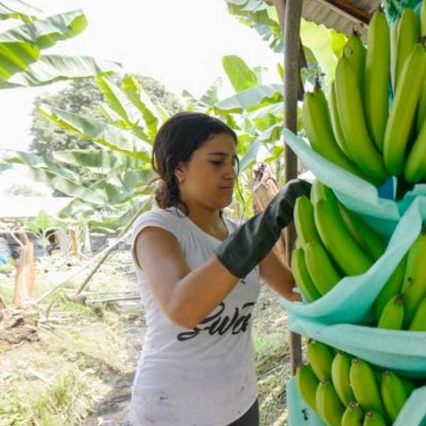 Pamina González, subdirectora de la AEBE, señala que la fruta representa un factor importante para la economía ecuatoriana y que su cadena emplea a aproximadamente 250.000 personas de manera directa.