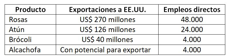 Las flores, el atún y el brócoli sumaron 436 millones de exportaciones a Estados Unidos, mientras que la alcachofa no se vende al mercado estadounidense. Los cuatros sectores representan alrededor de 80.000 plazas de empleos directos.
