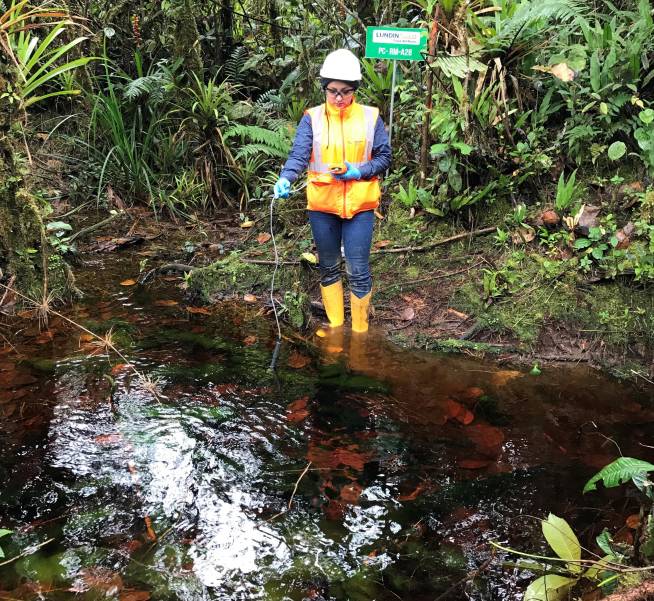 De igual forma, explica que el agua que entra a la concesión es monitoreada en sus niveles físicos y químicos, una vez adentro se la utiliza en procesos industriales o domésticos de campamento y se la reutiliza las veces que sea necesaria; solo es devuelta al ecosistema después de un monitoreo avalado por un laboratorio externo que determine que los niveles son iguales a los que tuvo el líquido al entrar.