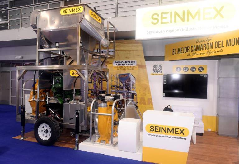 “Nuestro equipo es dúplex y sirve para cosechar y transferir camarón hasta tres kilómetros de distancia y a veces un poco más. Tenemos un impulsor patentado que permite cosechar y transferir a diferencia de otros que solo cosechan, no transfieren o maltratan a los animales”, asegura.