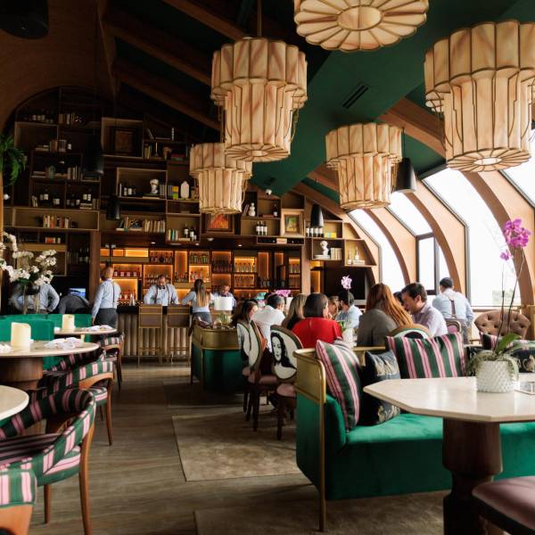 La arquitectura interior del restaurante es muy llamativa e ‘instagrameable’. El ambiente se destaca por el romanticismo, el cual se plasma en sus espacios y menaje.