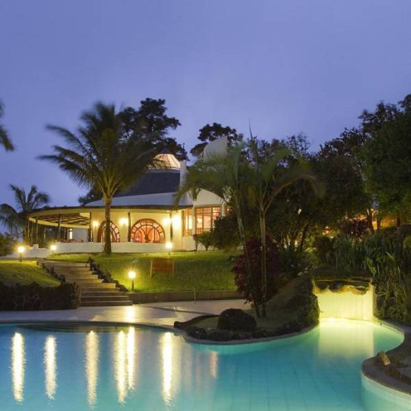 Su infraestructura acoge una piscina, spa, gimnasio y al mismo tiempo sus huéspedes pueden tener encuentros con la vida silvestre, desde tortugas hasta aves. Para una experiencia gastronómica, el hotel cuenta con un restaurante de alta cocina ubicado en el interior de una caverna en uno de los túneles de lava de la propiedad.