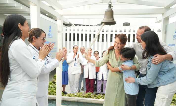 “Uno de los momentos más emocionantes que nosotros como Solca podemos observar es cuando los pacientes repican las campanas porque están demostrando o están diciendo que ya están en remisión, que están curados y que se pueden ir a sus casas satisfechos y nosotros también por haber cumplido nuestra labor científica”, agrega José Jouvín.