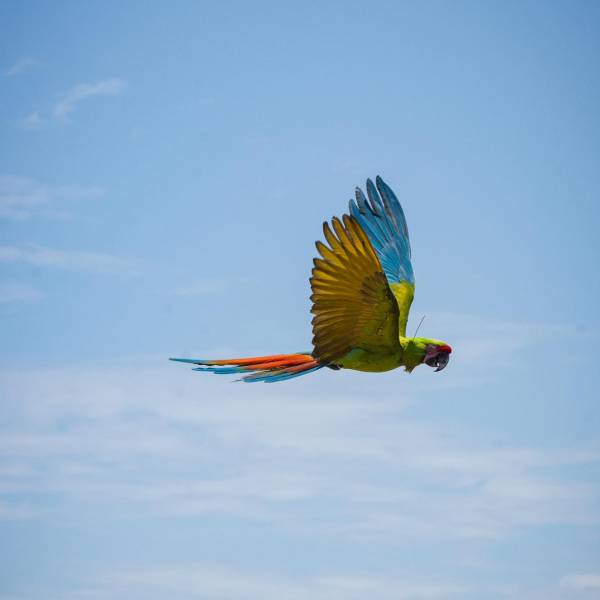 Un guacamayo verde mayor volvió a surcar los cielos tras ser liberado en la reserva Las Balsas, como parte del programa de reintroducción liderado por la Fundación Jocotoco desde 2017.