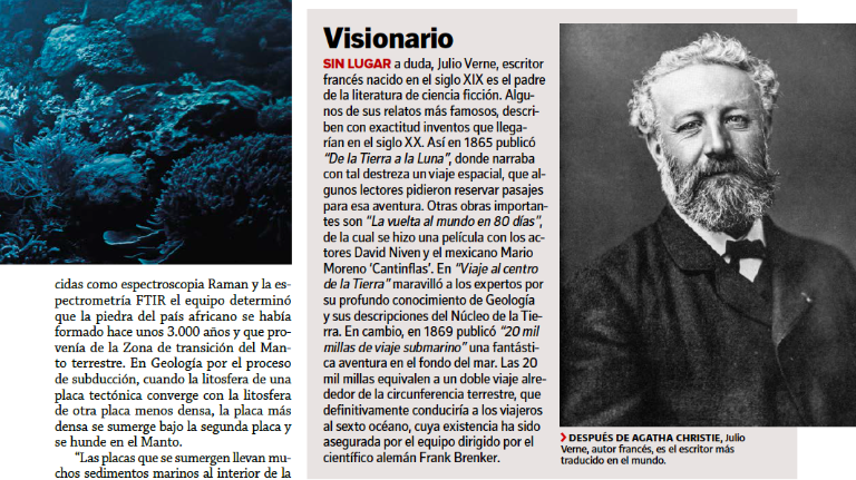 Hasta este descubrimiento, añade: “No teníamos claro cuánto entra a la Zona de transición como minerales y carbonatos más estables y si estos almacenan grandes cantidades de agua. La composición química de la piedra, tiene fragmentos idénticos a los de las rocas del Manto encontrados en el basalto, lo cual indica que el diamante proviene del Manto de la Tierra, donde el mineral dominante es el ringwoodite (ringwoodita), con alto contenido de agua. El estudio demostró que la Zona de transición no es una esponja seca, sino que posee considerables cantidades de agua. Esto nos acerca a la idea descrita por Julio Verne, de que existe un océano, en el centro de la Tierra”, explicó Brenker durante la presentación de sus hallazgos científicos.