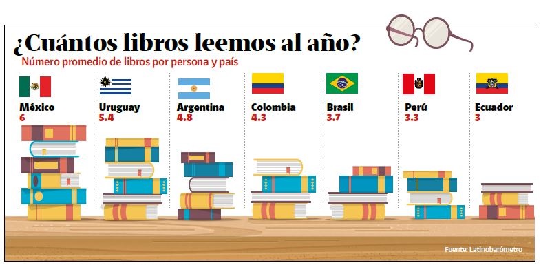 Ecuador es uno de los países de la región en la que menos libros se leen. Según datos del Latinobarómetro, un estudio sobre consumos culturales de la Organización de Estados Iberoamericanos para la Educación, la Ciencia y la Cultura (OEI), llevado a cabo en 16 países, en Ecuador leemos tres libros por año, en Argentina el número sube a casi cinco, y en México a seis. Más del 40 por ciento de encuestados en la región no ha leído un libro nunca o casi nunca ya sea por motivos de estudio o trabajo o por placer (ocio, entretenimiento, interés personal, etc.).