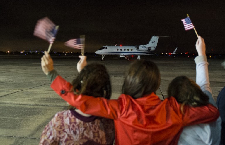 Kelly aterrizó en Houston (Texas) en un avión de la Administración Nacional de la Aeronáutica y del Espacio (NASA), con casi tres horas de retraso a causa de los fuertes vientos.