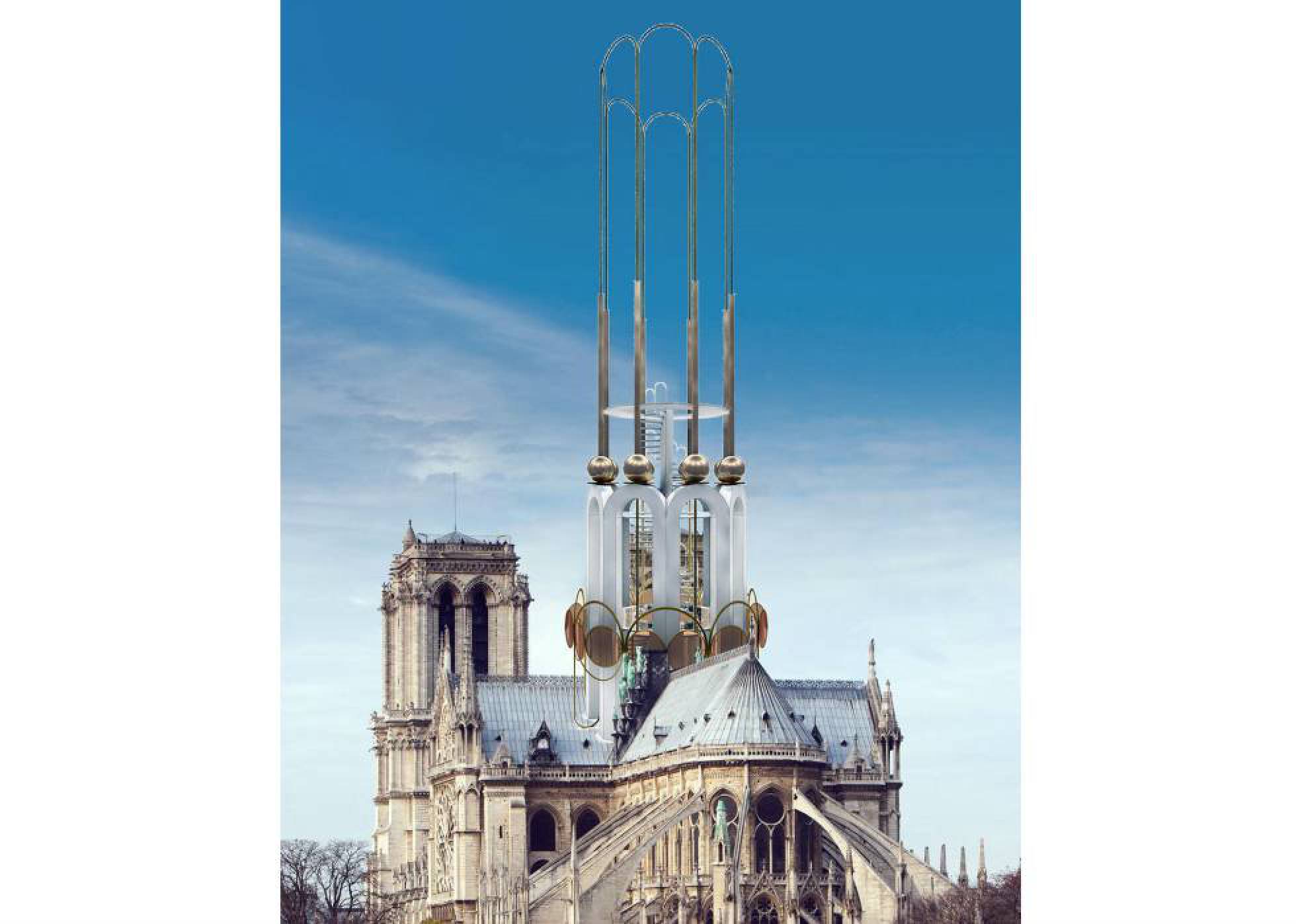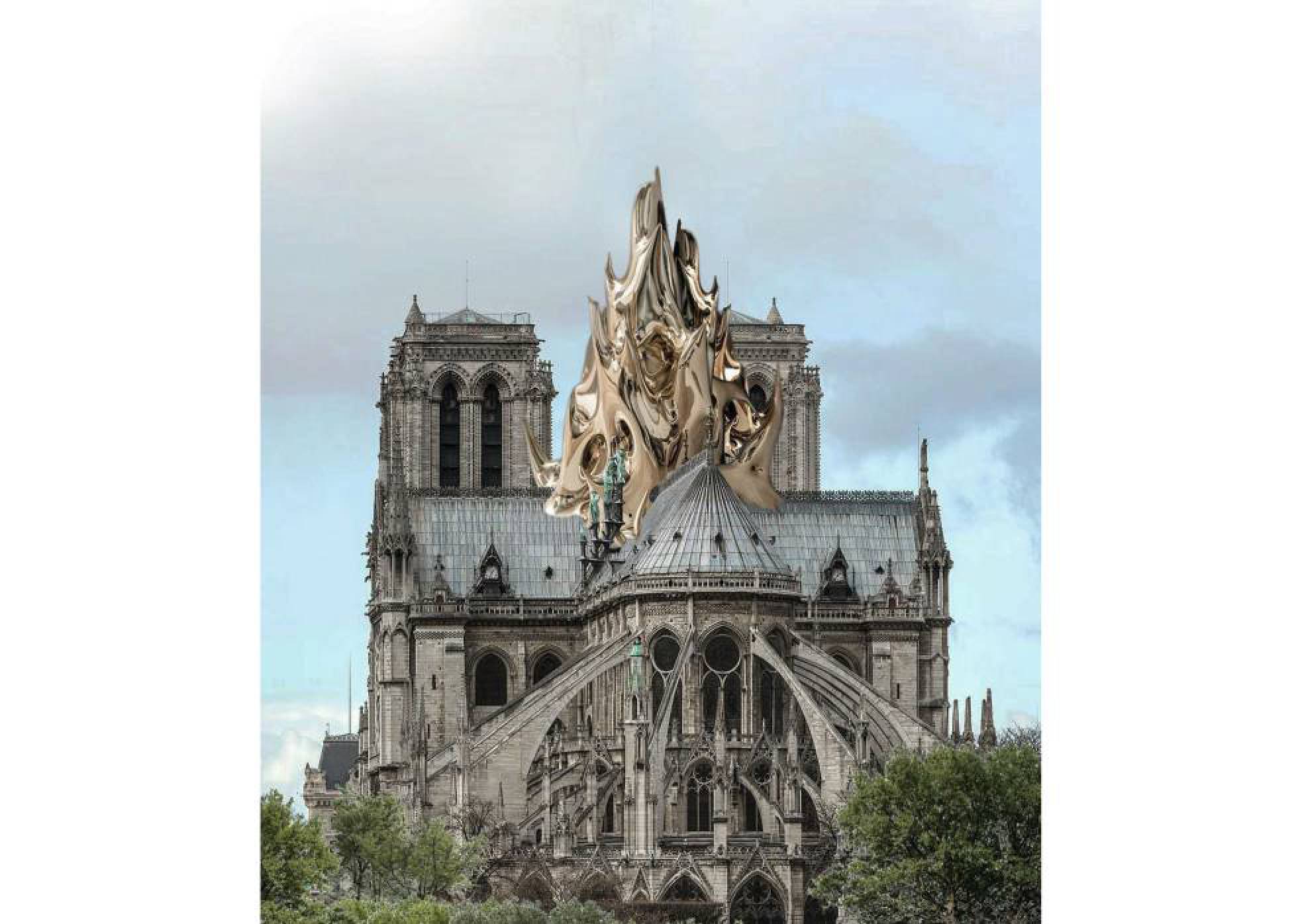 El diseñador francés ha recurrido a su pieza 'Fireplace' aplicándole un gran cambio de escala para rendir su homenaje al monumento (y como recuerdo del propio incendio). Su diseño, la simulación de una llama de fuego hecha en piedra de lava y con acabado dorado, le sirve para proponer lo que él considera una solución que responde tanto a los partidarios de devolver la catedral a su estado original, como a los que defienden una intervención coherente con el momento actual. Sobre cómo se habitaría ese espacio no tenemos información, ya que, como muchas de estas propuestas urgentes, se quedan en una fase muy inicial de planteamiento.