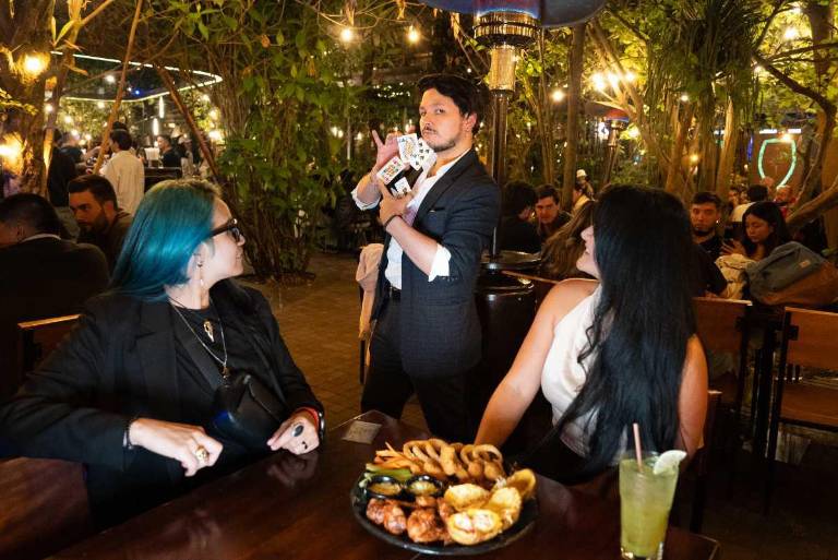 Hay personas desde los 18 hasta los 70 años. Siempre tienen actividades artísticas y un mago que recorre las mesas sorprendiendo con sus trucos.