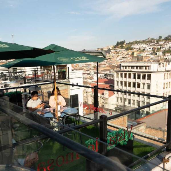 Desde aquí se puede ver todo el Centro Histórico de Quito. Desde El Panecillo hasta la Basílica, y desde el Itchimbía hasta el Pichincha. Es una vista de 360 grados que muestra las cúpulas de las iglesias, las casas antiguas de teja, las plazas y las calles estrechas del Casco Colonial.