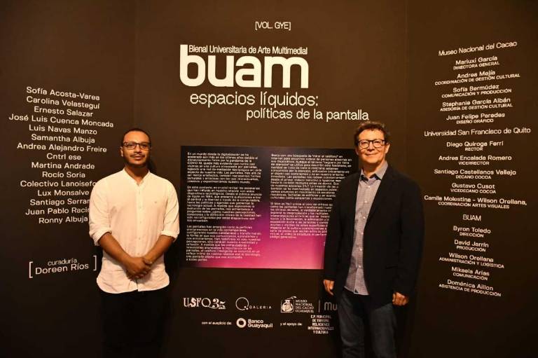 La muestra, bajo el título "Espacios Líquidos: Políticas de la Pantalla" curado por Doreen Ríos, se lleva a cabo en el Museo Nacional del Cacao, invita a reflexionar sobre la relación entre el arte, la tecnología y la virtualidad mediante 15 obras que incorporan realidad virtual, pantallas y tecnologías interactivas.