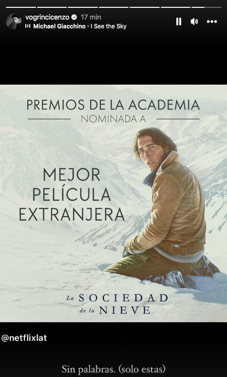 “Era algo muy lejano, pero cuando estábamos trabajando, durante dos años, con un director como Juan Antonio Bayona, bajo la producción de Netflix... Decís ok, ‘chances hay’, no estamos tan lejos”, expresó el actor, quien se mostró agradecido por la acogida de la cinta.