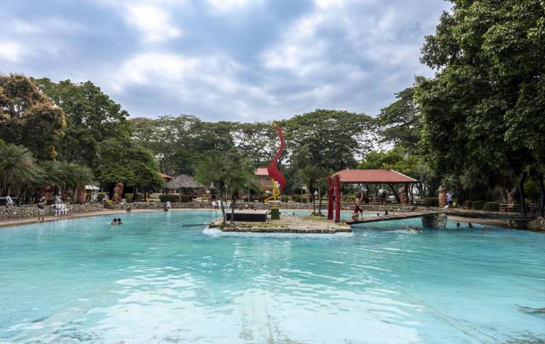 Con 13 piscinas activas, incluida una para mascotas, este mágico espacio lleva 23 años atrayendo familias de Nobol y todo el país. En constante movimiento, el parque de 80 hectáreas reúne un sinnúmero de escultores, pintores, arquitectos e historiadores cuya única misión es dar a conocer la historia del Ecuador poniendo énfasis en la cultura montubia.