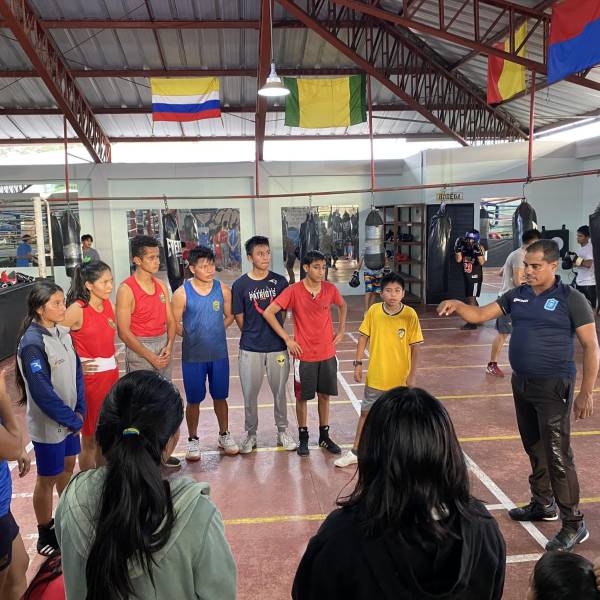 Son las cuatro de la tarde de un miércoles y el sol empieza su descenso hacia el ocaso. El cielo parece una obra de arte que llama a la esperanza y es el escenario ideal cuando se mezclan los gritos y las risas de niños y adolescentes que llegan a los gimnasios de la Federación de Pastaza.