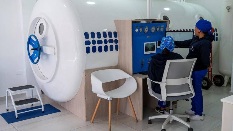 Esta situación cambia radicalmente en una cámara hiperbárica donde el oxígeno puro llega al 100%. “Dentro del equipo incrementamos la presión atmosférica aumentando hasta 23 veces la cantidad de oxígeno, con lo cual hiperoxigenamos nuestras células que nos ayudarán en múltiples factores”, explica Paúl Pástor, jefe del departamento médico de Medical Hiperbárica.