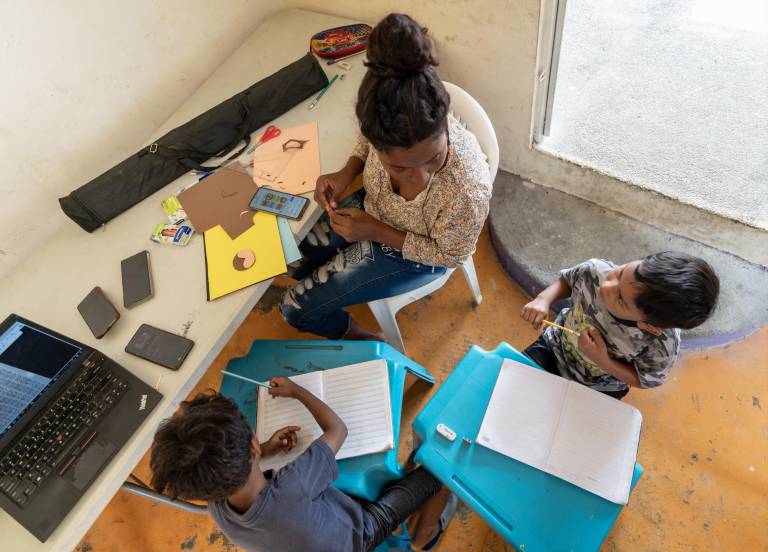 El centro de operaciones de la Fundación Nia Kali es la planta baja de la casa de Inés. Allí, junto a varias voluntarias, atienden a 150 niños, niñas y adolescentes. Pero, de manera fija trabajan con sesenta.