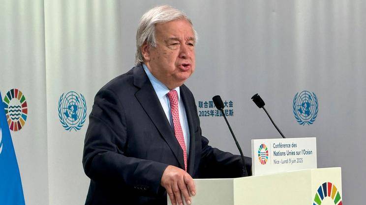 Guterres advirtió que los océanos están absorbiendo el 90 % del exceso de calor generado por las emisiones de gases de efecto invernadero. Al mismo tiempo, sufren los efectos combinados de la sobrepesca, el calentamiento global, la contaminación por plásticos y la acidificación de sus aguas.