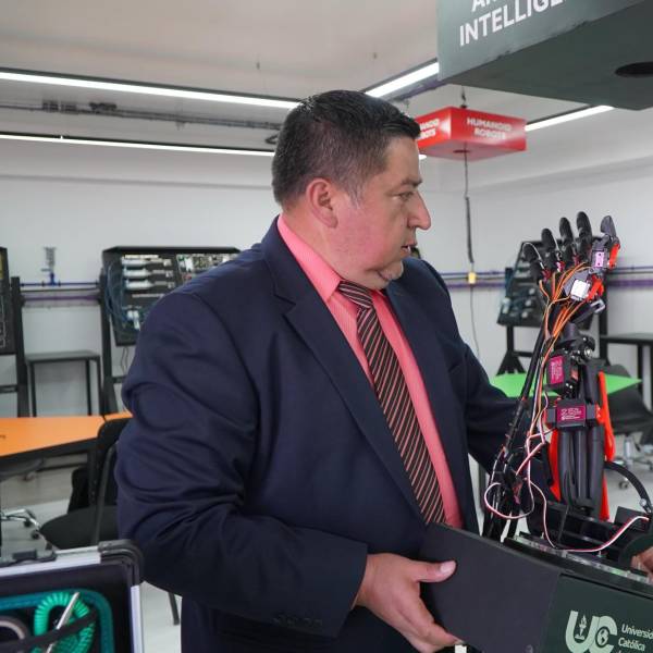 Él, junto a otros investigadores, desarrollan un proyecto de investigación científica con el que buscan crear un brazo robótico capaz de traducir el español y el quichua al lenguaje de señas. El objetivo es mejorar la comunicación de personas con discapacidad auditiva.