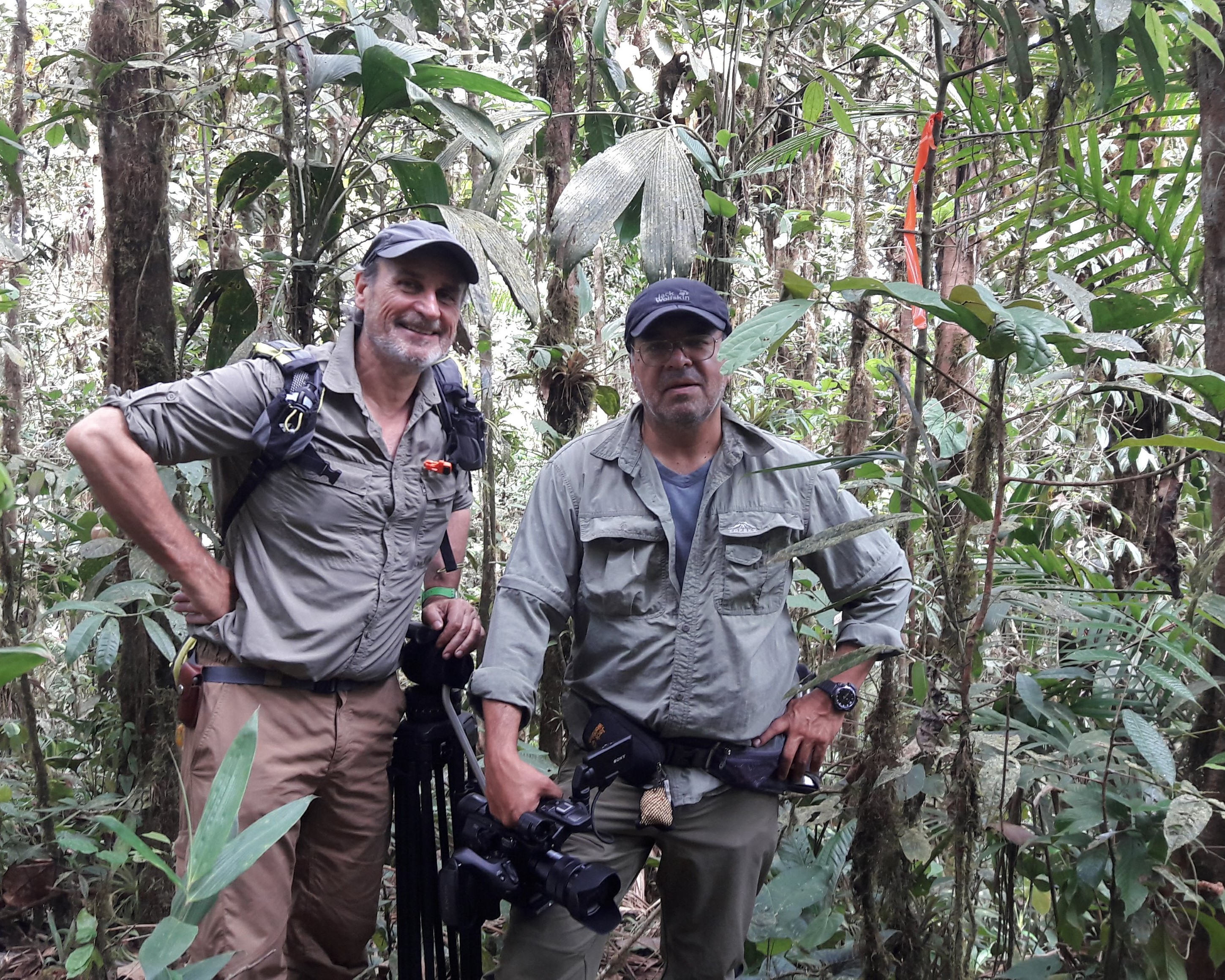 El francés Philippe Molins, director de "La vida secreta del oso de anteojos", junto al productor ecuatoriano Patricio Andrade. El siguiente proyecto de ellos será en el río Napo.