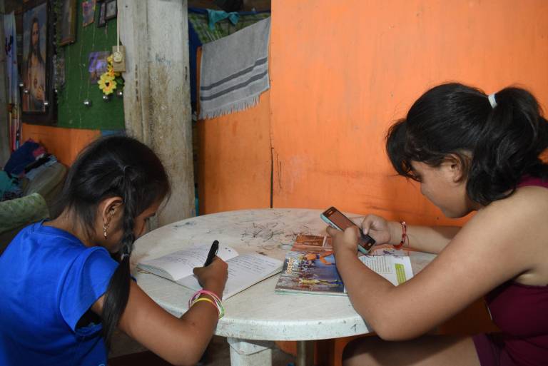 En su casa solo hay dos celulares, no tienen computadoras ni otros dispositivos electrónicos. Desde este año pagan 25 dólares para tener internet. “Antes pedíamos de favor a los vecinos que nos presten internet, para que los chicos hagan sus tareas”.