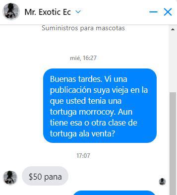 Vistazo contactó a distintas cuentas que ofertaban animales considerados como fauna silvestre por medio de publicaciones en Facebook. Las respuestas llegaron en cuestión de horas, en las que se detallaba el precio de la especie en venta, edad e información acerca de la entrega a los clientes.