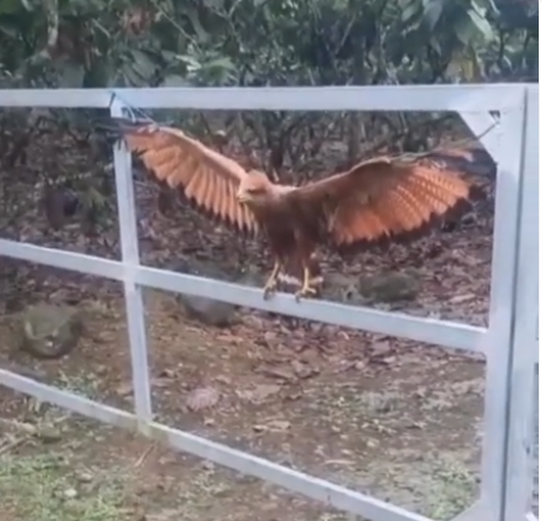 Amarrada de las dos alas a una cerca. Así fue torturada una ave rapaz que fue rescatada en Matilde Esther, una localidad ubicada cerca de Bucay (Guayas).