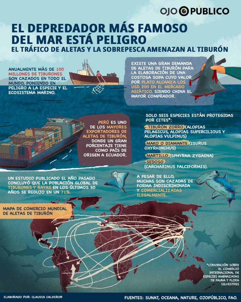 Además, durante los últimos 10 años estas empresas han concentrado el 43% de las 2.700 toneladas de aletas de tiburón que se exportaron desde Perú hacia Hong Kong, China y Singapur. Perú se encuentra entre los 15 países del mundo que más exportaciones de aletas de tiburón tiene hacia China, según la Organización de las Naciones Unidas para la Alimentación y la Agricultura (FAO).