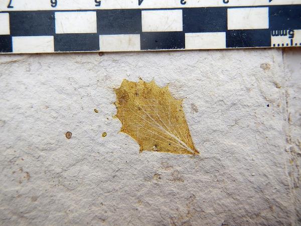 Muestra de una hoja fósil de Berberis del Plioceno, en el municipio de Espinar (Perú). Foto:EFE