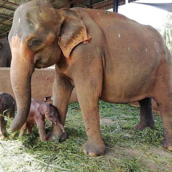 Surangi ya había alumbrado a un primer hijo en 2009. El padre, Pandu, de 17 años, es también uno de los 81 residentes en el orfanato, creado en 1975 para albergar a elefantes salvajes errantes.