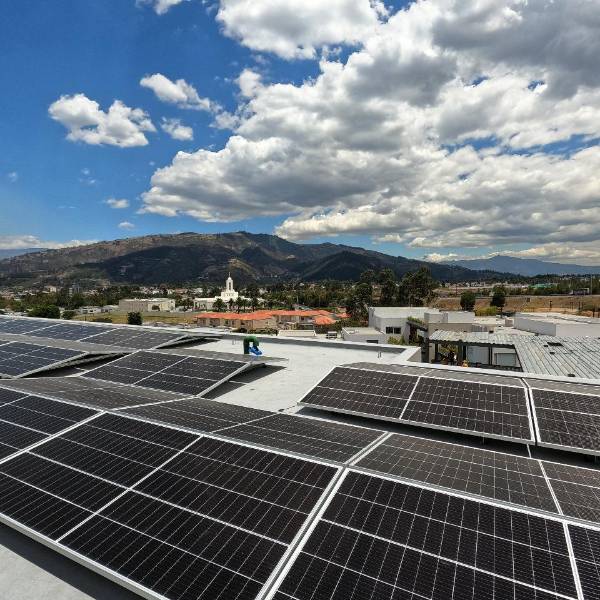 Este sistema que recibe la luz solar y la transforma en energía, tiene una certificación de factibilidad por parte de la Empresa Eléctrica de Quito. Los paneles solares permitirán que durante los próximos 25 años se generen más de tres millones de kilovatios de autosuficiencia energética, se evitan más de 46 toneladas de CO2 que equivalen a la plantación de cerca de 63 árboles.
