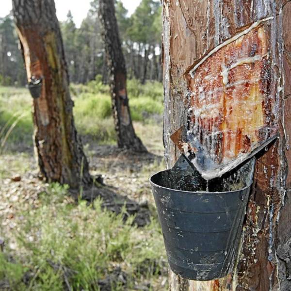 Con la llegada de la industrialización se logró procesar la savia para plástico, mejores barnices, caucho, cola y demás. En el siglo XIX, los propietarios de los bosques Pinus pinaster, donde había una amplia cantidad de pinos, en Castilla y León, tomaron la oportunidad de hacer negocio con esa materia prima.