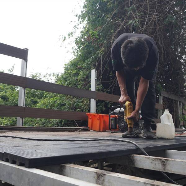 Los tablones de caucho reutilizados reemplazan a los de madera plástica que ante la falta de mantenimiento se han deteriorado, ocasionando accidentes y lesiones a los habitantes de la zona y turistas.