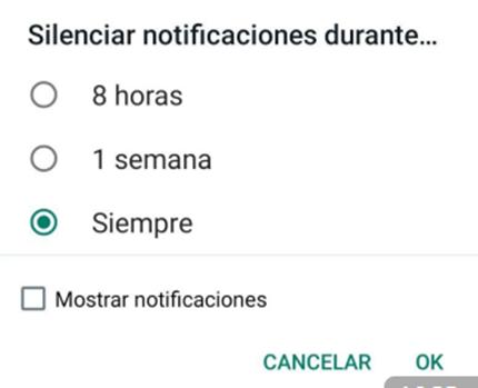 Después de seleccionar la opción de ‘silenciar’, en pantalla aparecerá un pequeño menú en el que se debe pulsar en ‘siempre’