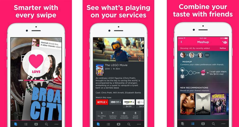 La aplicación, a la que se accede a través de Facebook, tiene opciónes para que sus amigos puedan recomendarle nuevos contenido. También tiene una sección de tendencias para conocer cuáles son las series o los filmes más populares del momento.