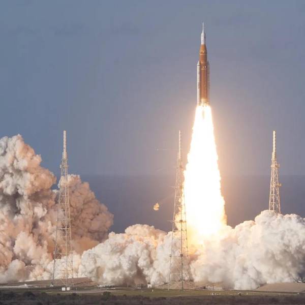 Los videos grabados desde los aviones muestran cómo el cohete SLS asciende a gran velocidad y en el cielo deja un trazo luminoso que parece desafiar la gravedad.