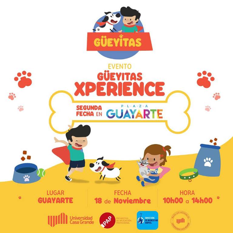 Este sábado 18 de noviembre de 2023 los guayaquileños podrán aprender acerca de la convivencia responsable con sus animalitos en el evento "Güeyitas Xperience". El evento se efectuará en la Plaza Guayarte.