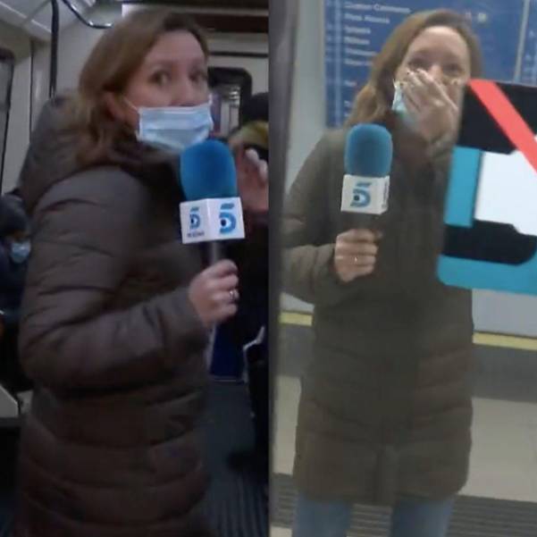Resulta que Sandra Mir, periodista del canal español ‘Telecinco’, estaba en la estación Plaza Castilla en el metro de Madrid. Hacía una nota sobre el fin de la obligatoriedad del uso de la mascarilla en el transporte público.
