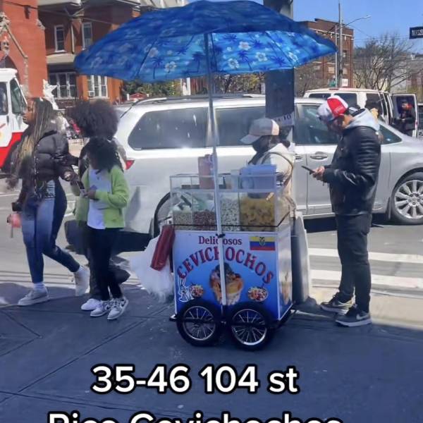 Un migrante ecuatoriano se volvió viral tras publicar en su cuenta de TikTok un video de una tradicional carreta de cevichochos en las calles de Nueva York, Estados Unidos. El puesto ambulante llevaba por nombre “Deliciosos cevichochos”.